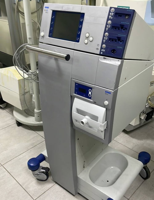 Koagulator endoskopowy ERBE VIO 200S to wysokoczęstotliwościowa platforma przeznaczona do szerokiego zakresu zadań chirurgicznych. Urządzenie oferuje różne tryby cięcia i koagulacji z określonymi poziomami efektów, zapewniając lekarzowi elastyczność podczas zabiegów interwencyjnych.